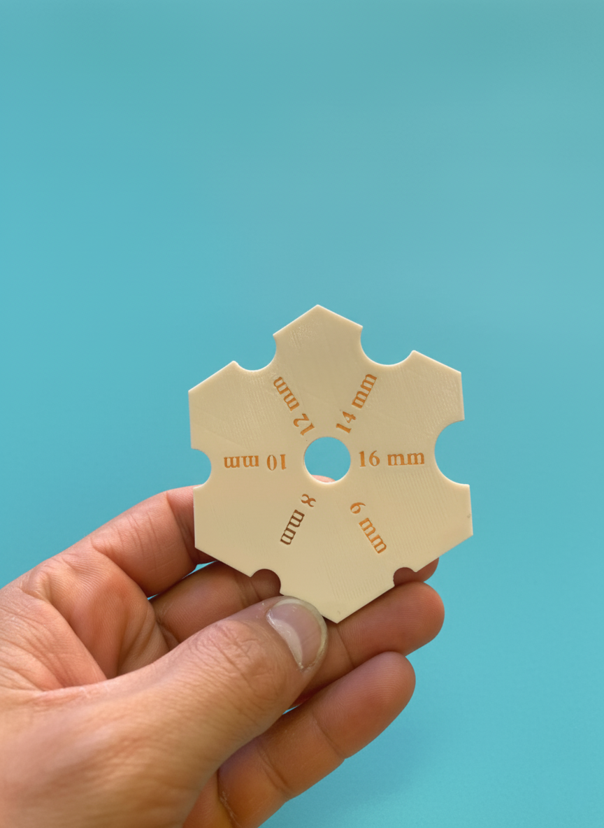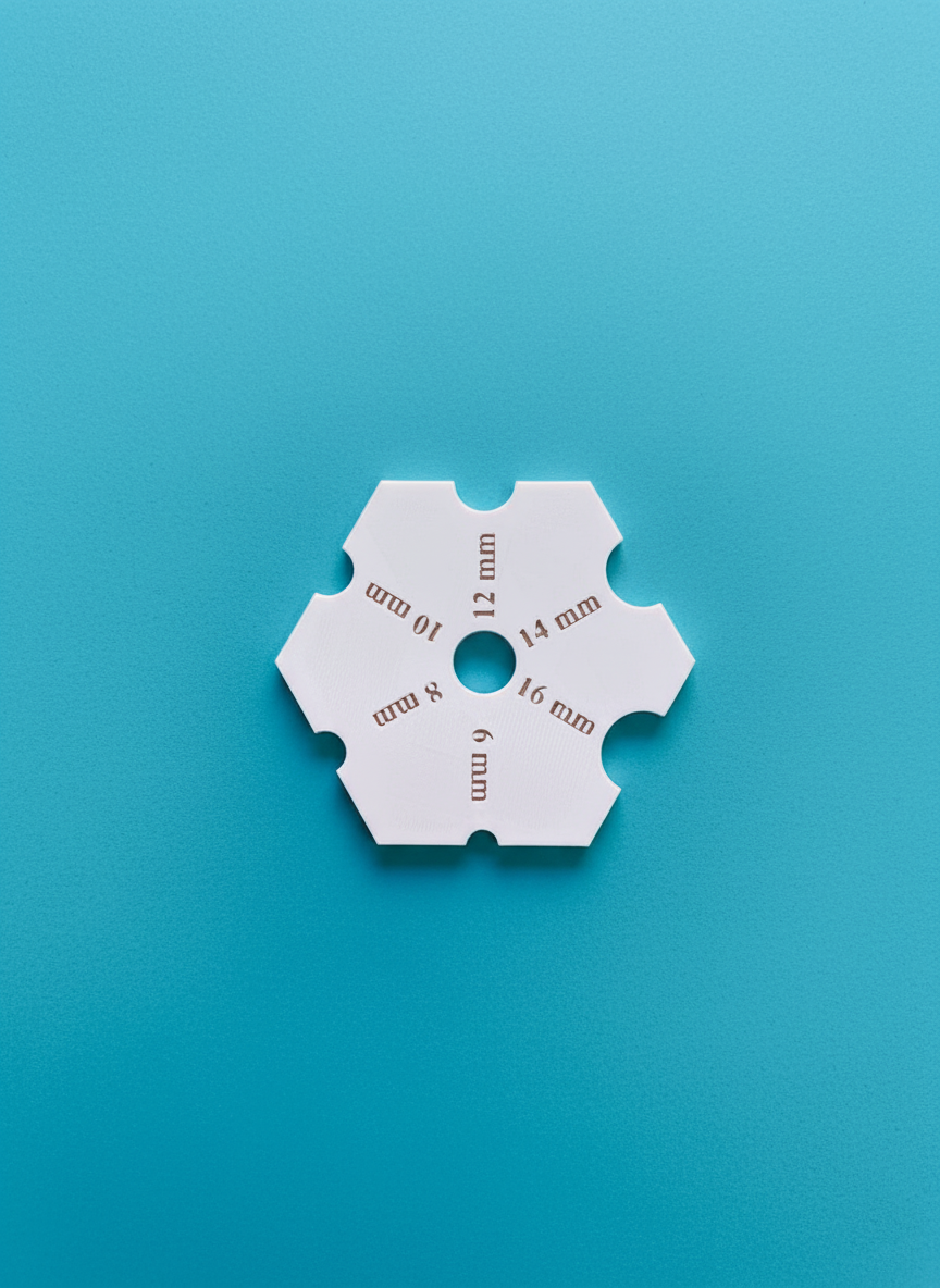 Metric Consistency: Features six clearly marked, concave profiles in popular metric sizes: 6 mm, 8 mm, 10 mm, 12 mm, 14 mm, and 16 mm.